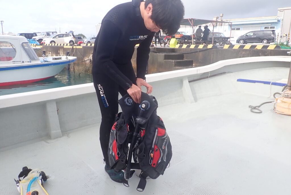 午前中は、限定水域で器材セッティングの練習、足の着く水深でダイビングの基本的なスキル、トラブルの対処などの練習を行い、午後からの海洋実習では限定水域講習で練習したスキルなどを実践的に行っていきます。